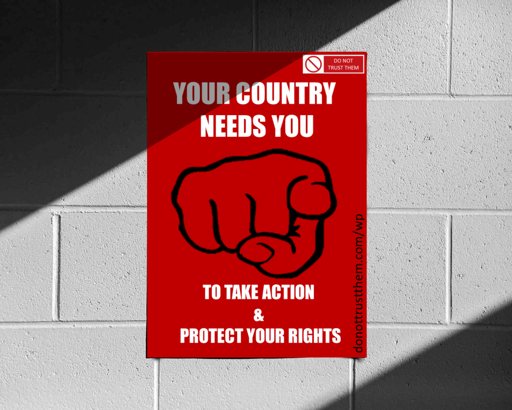 Operating in the shadows, the schemers and traitors, have spent decades in planning the downfall of those who are not compliant in engaging in crimes against humanity, and enabling their overall obsession; to micromanage every aspect of our [shortened] lives, alongside them or acting on their behalf. Those who DO become compliant, will automatically be forever slaves – subservient to criminals, narcissists, psychopaths; and every other dysfunctional, personality type – ‘who wield the big stick!’ Of course they always maintain their own parasitic lifestyle, ‘lining their own pockets’ from feeding off the misery of others, and aim to keep themselves free from harm; using all the resources they acquire from operating under false pretences. However, the gloves (and their masks ), are now off and we have more legal & moral rights to defend ourselves; from their monumental, state sponsored acts of terrorism & abuse – than they have to continue endangering us. Just refuse to recognise their authority and call them out with overwhelming evidence; that they are engaging in illicit & dangerous actions for personal gain to acquire total control over us.