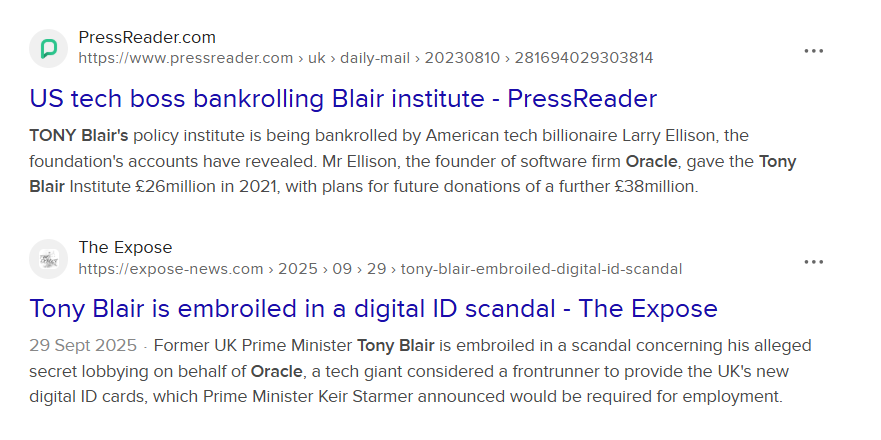 The most likely reason they’re resisting another lucrative contract is emerging – Tony Blair the main driving force behind THE DIGITAL ID TRAP – Another power grab to abuse & exploit the public – wants Oracle to take it up. The all round, British traitor’s own son has a techy company too and will no doubt be benefiting from any deals made by his highly, influential father.