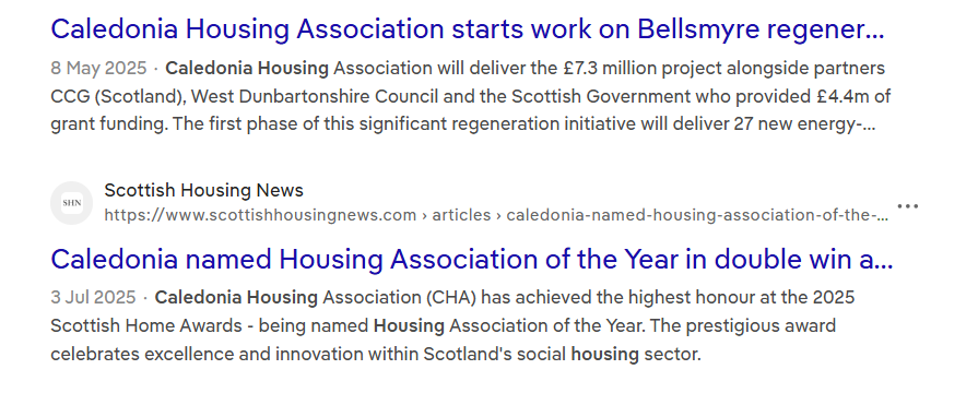 Allan Jones, chair of Caledonia Housing Association, added: “These awards recognise the dedication, compassion and ambition that define Caledonia. From supporting local organisations to delivering outstanding new homes, we remain focused on delivering positive change that matters.”