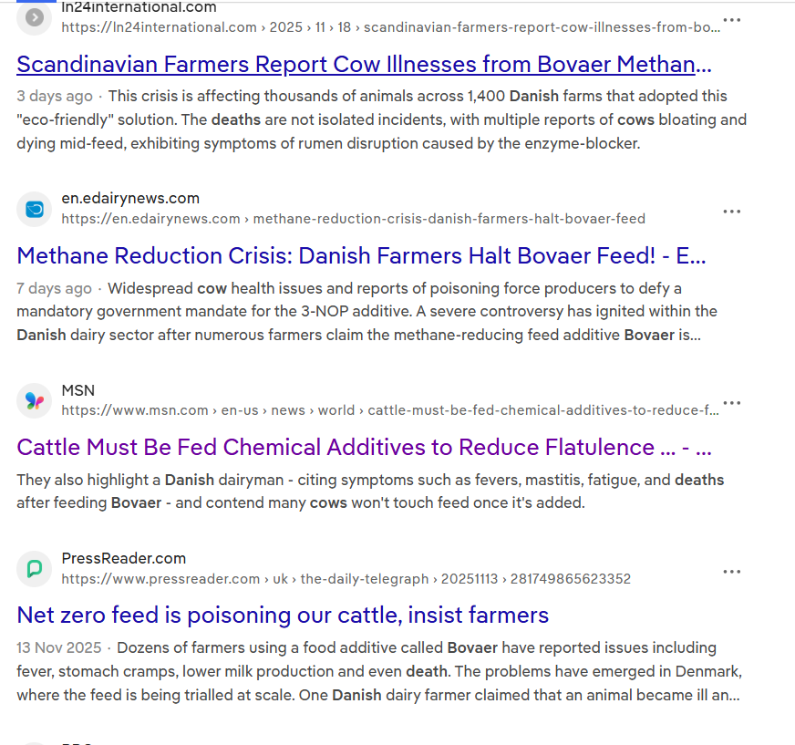 “Lauwereins notes the timeline. As of Oct. 1, 2025, Denmark required farms with more than 50 cows to feed Bovaer for at least 80 days per year. Non-compliance meant heavy fines.” – Cattle Must Be Fed Chemical Additives to Reduce Flatulence Emissions To “Save the Planet Story by Mark Harris on MSN.